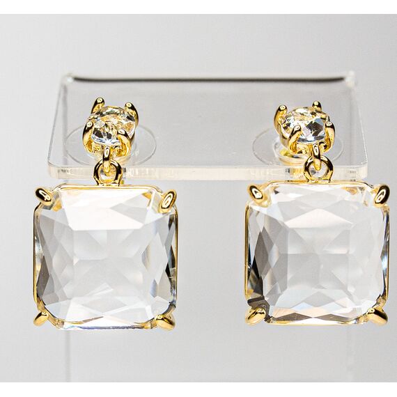 Серьги из гипоаллергенного ювелирного сплава желтого цвета. Вставка- ювелирное стекло белого цвета. Высота серег-1,5см, ширина-1,5см. Застежка-пусет.