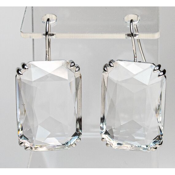 Серьги из гипоаллергенного ювелирного сплава серого цвета. Вставка- ювелирное стекло белого цвета. Высота серег-2,5см, ширина-2см. Застежка-петля.