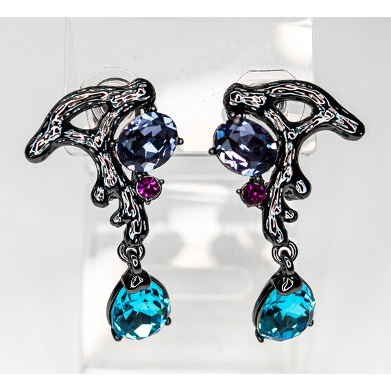 Серьги из гипоаллергенного ювелирного сплава черного цвета. .Вставка-ювелирное стекло, цвет- голубой, розовый, сиреневый. Итальянский замок( швенза-1,2см и застежка- клипса). Подвесная часть серег- размер камня (голубого)-1,2/1,5см. Высота серег-4,5-см, ширина-2,2см.