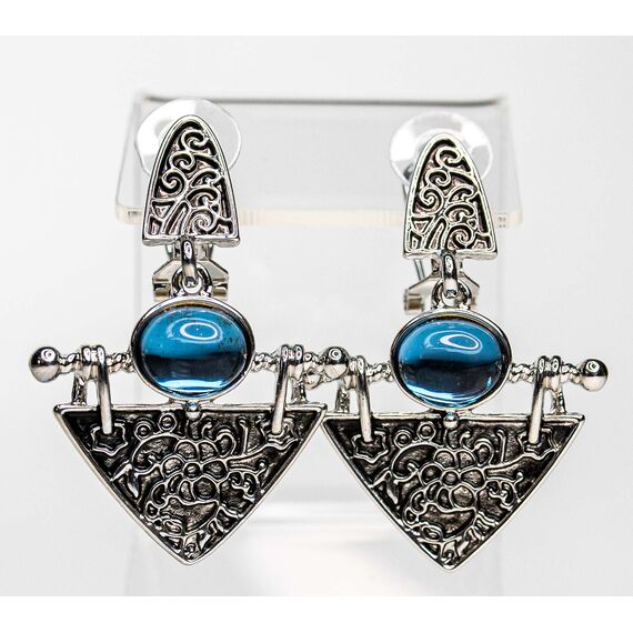 Серьги из гипоаллергенного ювелирного сплава серого цвета. Вставка- улексит (кошачий глаз), цвет- голубой. Высота серег-4,5см, ширина-3см. Итальянский замок( швенза-1,2см и застежка-клипса).