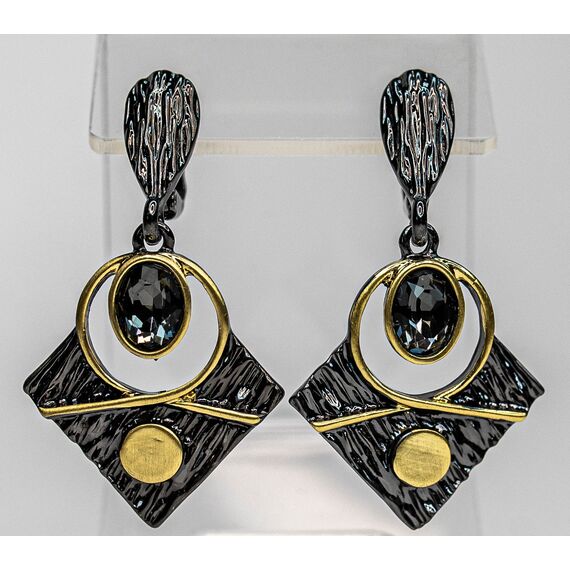 Серьги из гипоаллергенного ювелирного сплава черного и желтого цвета. .Вставка-ювелирное стекло, цвет- серый. Английский замок( швенза-1см).Высота серег-4,5см, ширина-2,5см.