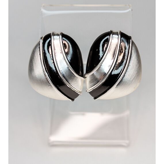 Серьги из гипоаллергенного ювелирного сплава серого и черного цвета. Без вставок. Итальянский замок ( швенза-1,2см и застежка- клипса). Высота серег-3см, ширина-2,5см.