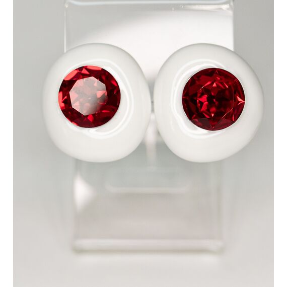 Серьги из гипоаллергенного ювелирного сплава серого цвета. Вставка- ювелирное стекло красного цвета. Покрытие эмалью, цвет- белый. Итальянский замок ( швенза-1,2см и застежка- клипса). Высота серег-3см, ширина-2,8см.