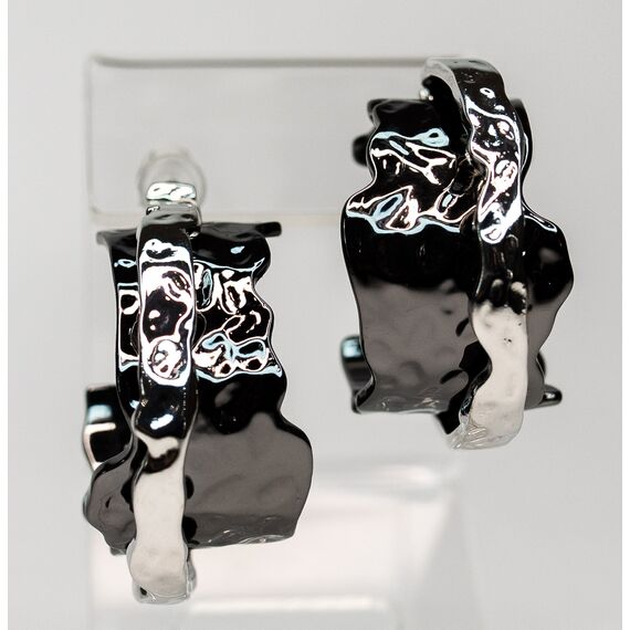 Серьги из гипоаллергенного ювелирного сплава черного и серого цвета. Без вставок. Итальянский замок (швенза-1,2см и застежка-клипса). Высота серег-3,5см, ширина-2см.