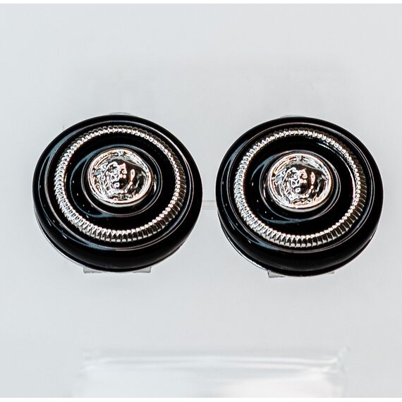 Серьги из гипоаллергенного ювелирного сплава серого цвета. Покрытие эмалью черного цвета. Высота серег-2,5см, ширина-2,5см. Итальянский замок (швенза-1,2см и застежка- клипса).
