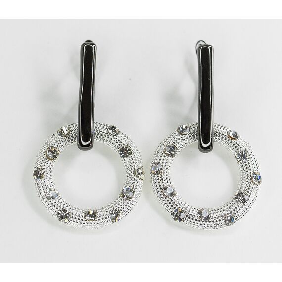 Серьги из гипоаллергенного ювелирного сплава серого и черного цвета . Вставка- фианти, цвет- белый. Английский замок (швенза-1см ). Высота серег-4см. ширина-2,5см.