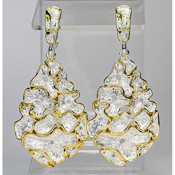 Серьги из гипоаллергенного ювелирного сплава серого и желтого цвета. Без вставок. Высота серёг-5,5см, ширина-2,5см. Английский замок( швенза-1см).
