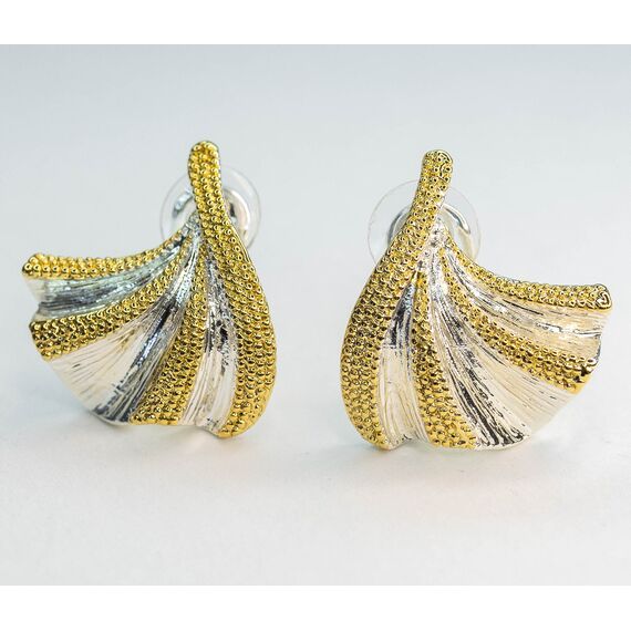 Серьги из гипоаллергенного ювелирного сплава серого и желтого цвета. Без вставок. Высота серег--3см, ширина-2,5см. Итальянский замок( швенза-1,2см и застежка- клипса).
