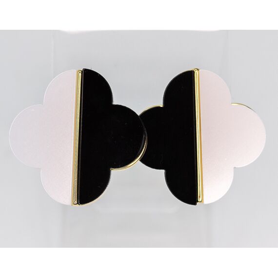 Серьги из гипоаллергенного ювелирного сплава желтого цвета и пластика, цвет- серый, черный. Без вставок. Застежка- пусет. Высота серег-3см, ширина-3см.