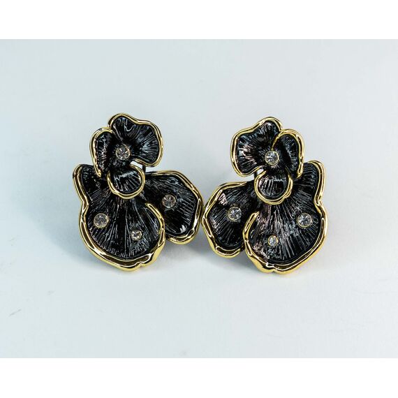 Серьги из гипоаллергенного ювелирного сплава черного и желтого цвета. Вставка- ювелирное стекло белого цвета. Итальянский замок( швенза-1,2см и застежка- клипса). Высота серег-3,5см, ширина-3см.
