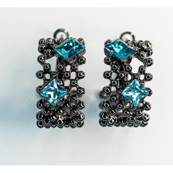 Серьги из гипоаллергенного ювелирного сплава черного цвета . Вставка- ювелирное стекло голубого цвета . Замок-булавка (швенза-1,2см ). Высота серег-2,5см, ширина-1см.