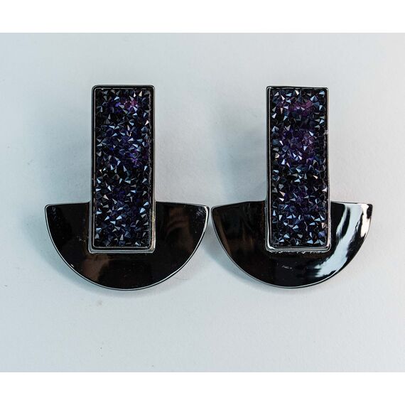 Серьги из гипоаллергенного ювелирного сплава черного цвета. Вставка-ювелирное стекло, цвет- синий, черный. Итальянский замок(швенза- 1,2см и застежка-клипса).Высота серег-5см. ширина-4см.