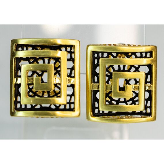 Серьги из гипоаллергенного ювелирного сплава черного и желтого цвета. Без вставок. Высота серег-2,2см, ширина-2,0см. Итальянский замок ( швенза- 1,2см и застежка- клипса).