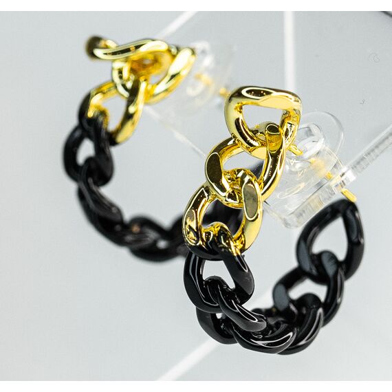 Серьги из гипоаллергенного ювелирного сплава желтого цвета. Без вставок. Покрытие эмалью черного цвета. Застежка- пусет. Высота серег-2,5см, ширина-0,6см.