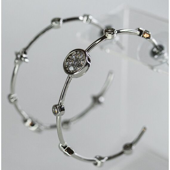 Серьги из гипоаллергенного ювелирного сплава серого цвета. Вставка- ювелирное стекло белого цвета. Высота серег-4см, ширина-0,6см. Застежка- пусет.