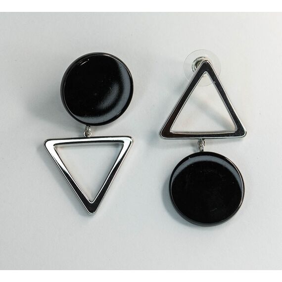 Серьги из гипоаллергенного ювелирного сплава серого цвета и пластика черного цвета. Без вставок. Застежка- пусет. Высота серег-4,5см, ширина-2,2см.