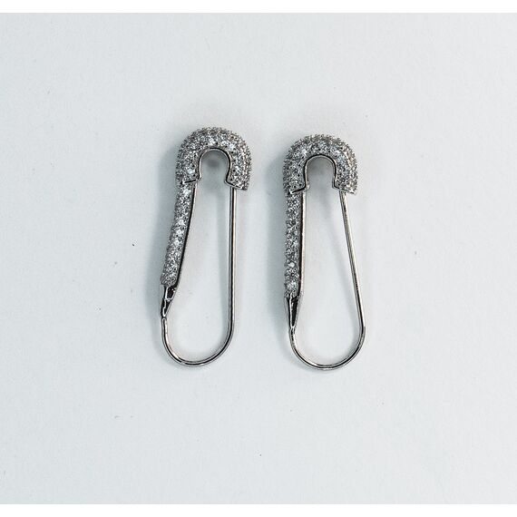 Серьги из гипоаллергенного ювелирного сплава серого цвета. Вставка- ювелирное стекло белого цвета. Высота серег-2,7см, ширина-0,8см. Застежка- булавка.