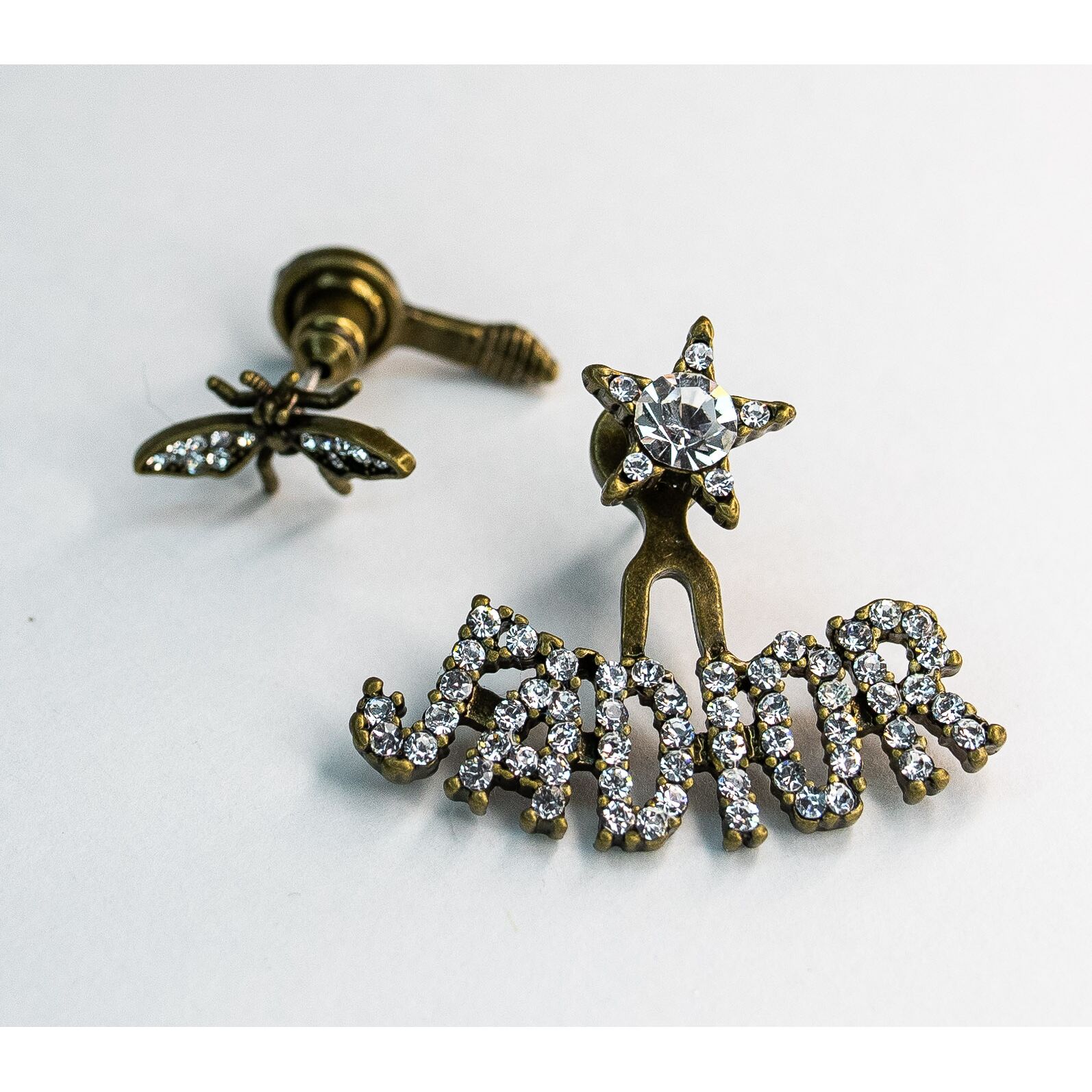 Серьги из гипоаллергенного ювелирного сплава бронзового цвета. Вставка- ювелирное стекло,цвет- белый. Застежка- пусет. Высота серег-2см, ширина-3см.