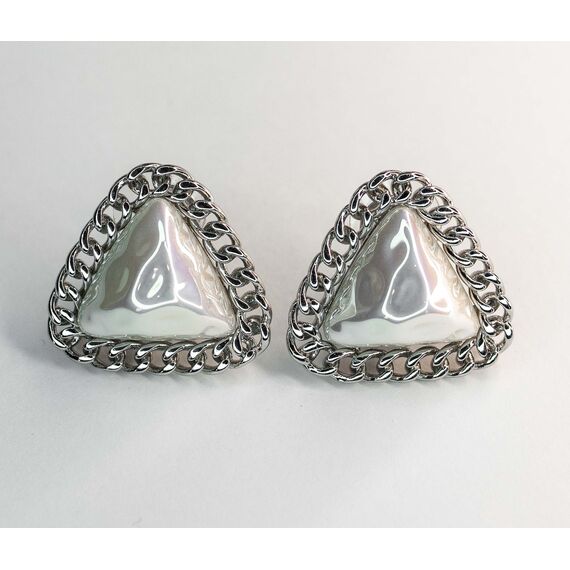 Серьги из гипоаллергенного ювелирного сплава серого цвета. Вставка- иск. жемчуг белого цвета. Итальянский замок( швенза-1,2см и застежка- клипса. Высота серег-2,5см, ширина-3см.
