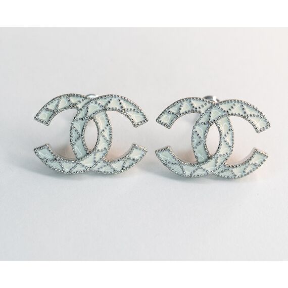 Серьги из гипоаллергенного ювелирного сплава серого цвета. Покрытие эмалью белого цвета. Высота серег-1,5см, ширина-2см. Застежка- пусет.