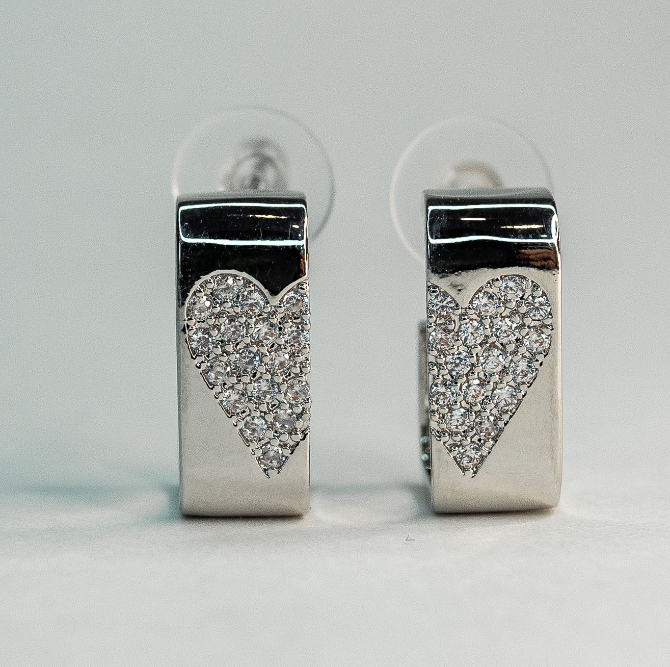Серьги из гипоаллергенного ювелирного сплава серого цвета. Вставка- ювелирное стекло белого цвета. Высота серег-1,8см, ширина-0,8см. Застежка- пусет.