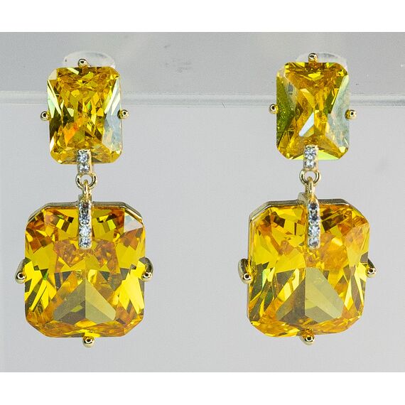 Серьги из гипоаллергенного ювелирного сплава желтого цвета. Вставка- ювелирное стекло желтого цвета. Высота серег-2,5см, ширина-1см. Застежка-пусет.