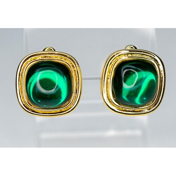 Серьги женские из гипоаллергенного ювелирного сплава желтого цвета. Вставка- ювелирная смола зеленого цвета. Высота серег-2,0см, ширина- 2,0см. Застежка- пусет.