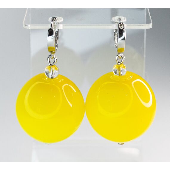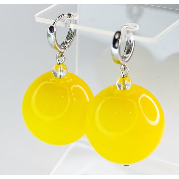 Серьги из гипоаллергенного ювелирного сплава серого цвета. Вставка- муранское стекло, цвет- желтый. Высота серег-3,5см, ширина-2,0см. Застежка- скоба.