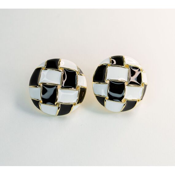 Серьги из гипоаллергенного ювелирного сплава желтого цвета. Покрытие эмалью белого и черного цвета. Без вставок. Застежка- пусета. Диаметр серег-2см.