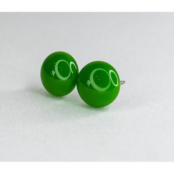 Серьги из ювелирного сплава серого цвета. Вставка- муранское стекло, цвет-зеленый. Диаметр серег-1,0см. Застежка- пусет.