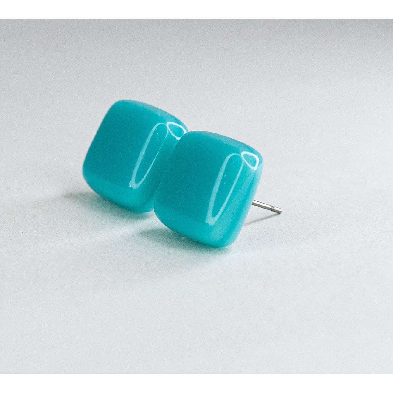 Серьги из ювелирного сплава серого цвета. Вставка- муранское стекло, цвет-бирюзовый. Диаметр серег-1,0см. Застежка- пусет.