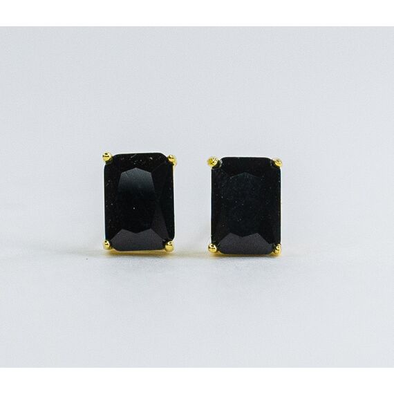 Серьги из гипоаллергенного ювелирного сплава желтого цвета. Вставка- ювелирное стекло черного цвета. Застежка- пусет. Высота и ширина серёг-0,6см и 0,4см.