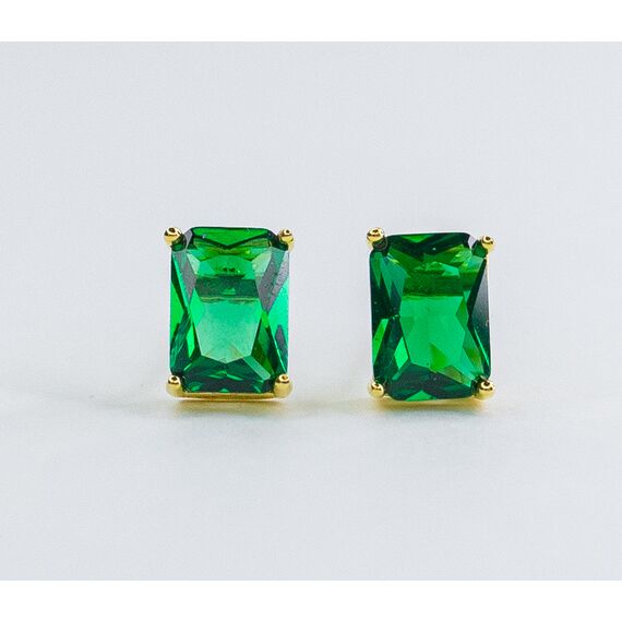 Серьги из гипоаллергенного ювелирного сплава желтого цвета. Вставка- ювелирное стекло зелёного цвета. Застежка- пусет. Высота и ширина серёг-0,6см и 0,4см.