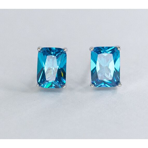Серьги из гипоаллергенного ювелирного сплава серого цвета. Вставка- ювелирное стекло голубого цвета. Застежка- пусет. Высота и ширина серёг-0,6см и 0,4см.