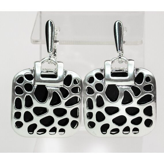 Серьги из гипоаллергенного ювелирного сплава серого-цвета. Вставка- пластик черного цвета. Английский замок ( швенза-1см ). Высота серег-4см, ширина-2,5см