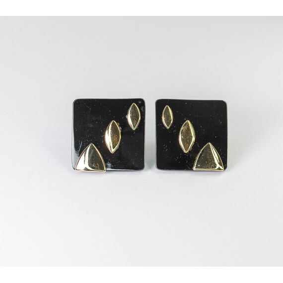 Серьги из гипоаллергенного ювелирного сплава черного, желтого цвета. Без вставок. Итальянский замок (швенза-1,2см и застежка-клипса). Высота серег-3см, ширина-3см.