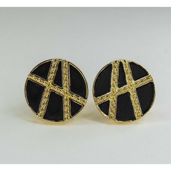 Серьги из гипоаллергенного ювелирного сплава желтого цвета. Без вставок. Покрытие эмалью черного цвета. Высота серег-2,5см, ширина-2,5см. Итальянский замок( швенза-1,2см и застежка-клипса).