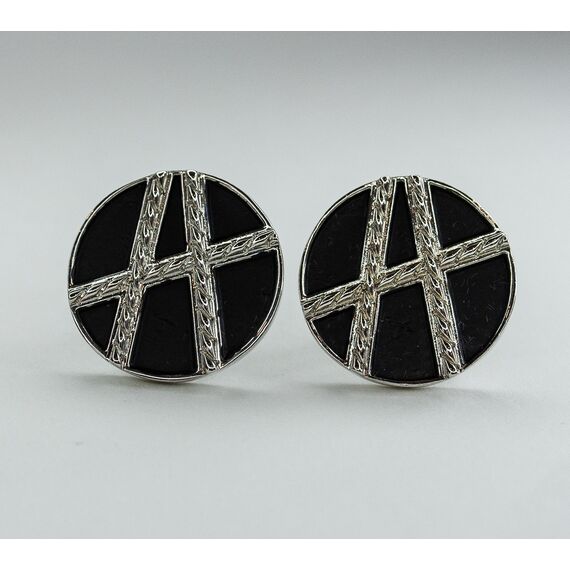 Серьги из гипоаллергенного ювелирного сплава серого цвета . Покрытие горячей эмалью черного цвета. Без вставок. Итальянский замок (швенза-1,2см и застежка-клипса). Высота серег-2,5см, ширина-2,5см.