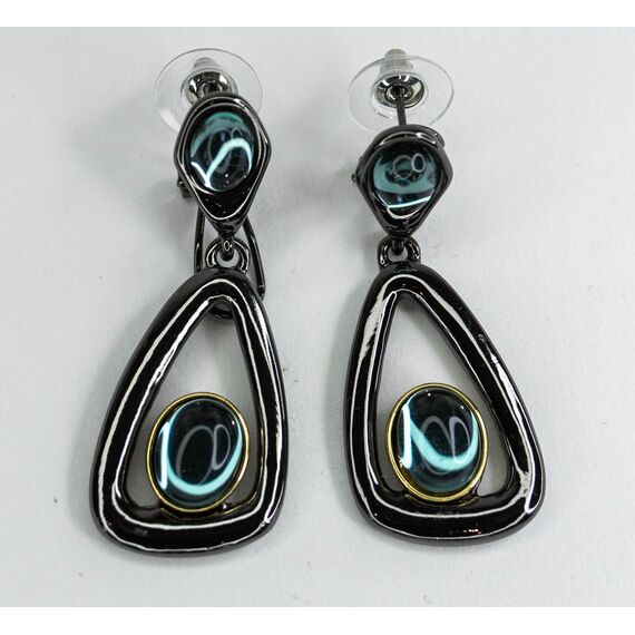 Серьги женские из гипоаллергенного ювелирного сплава черного цвета. Вставка- улексит, цвет- голубой. Высота серег- 3,5см, ширина- 2,0см. Итальянский замок ( штифт-1,2см и клипса).