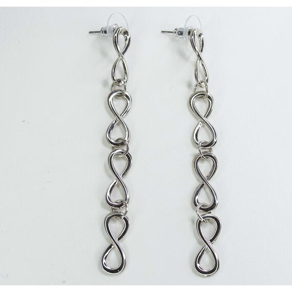 Серьги из гипоаллергенного ювелирного сплава серого цвета. Без вставок. Высота серег-8см, ширина-0,7см. Застежка- пусет.