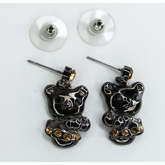 Серьги из гипоаллергенного ювелирного сплава черного цвета. Вставка- ювелирное стекло желтого цвета. Высота серег-2,5см, , ширина-1,2см. Застежка- пусет.