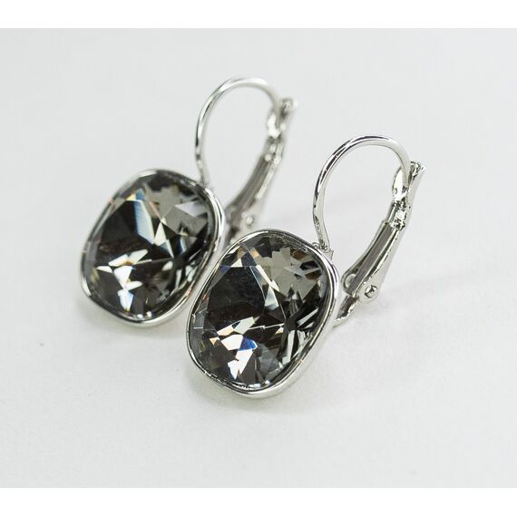 Серьги из гипоаллергенного ювелирного сплава серого цвета. Вставка- кристалл серого цвета. Высота серег-2,0см, ширина-1,2см. Итальянский замок ( застежка- клипса).