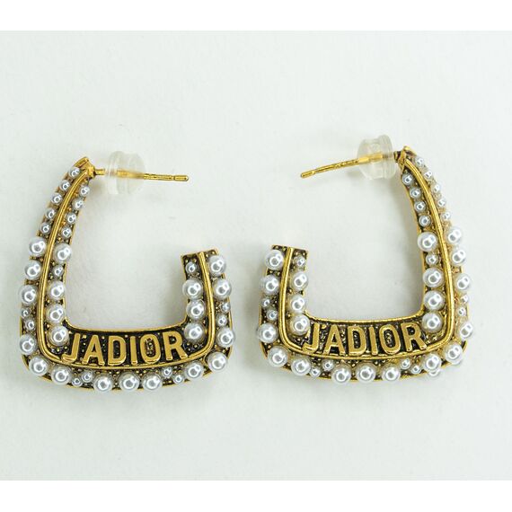 Серьги из гипоаллергенного ювелирного сплава желтого цвета. Вставка- жемчуг иск. белого цвета. Застежка- пусет. Высота серег-2,7см, ширина-2,5см.