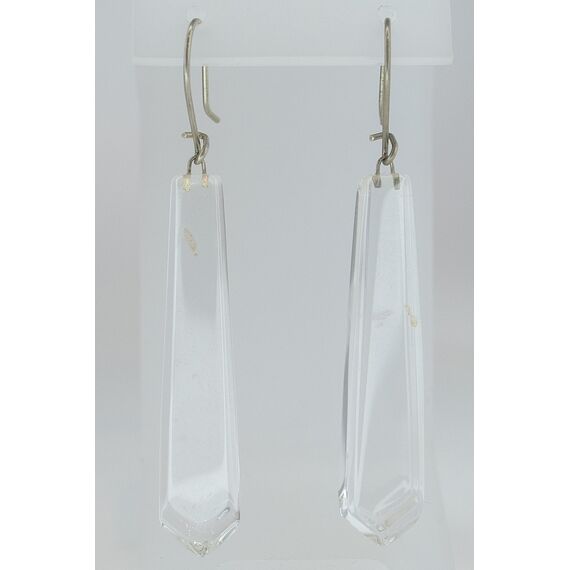 Серьги из гипоаллергенного ювелирного сплава серого цвета. Вставка- горный хрусталь белого цвета. Высота серег- 5,0см, ширина- 1,5см. Замок- петля.