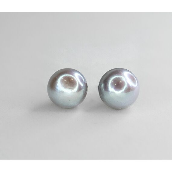 Серьги из гипоаллергенного ювелирного сплава серого цвета. Вставка- жемчуг, цвет- серый. Диаметр камня-0,9см. Застежка- пусет.