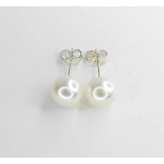 Серьги из гипоаллергенного ювелирного сплава серого цвета. Вставка- жемчуг, цвет- белый. Диаметр камня-0,9см. Застежка- пусет.