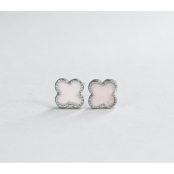 Серьги из гипоаллергенного ювелирного сплава серого цвета. Покрытие эмалью розового цвета. Высота серег-0,6см, ширина-0,6см. Застежка- пусет.