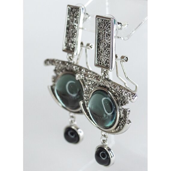 Серьги из гипоаллергенного ювелирного сплава серого цвета. Вставка- улексит серо-зеленого цвета. Высота серег- 5,0см, ширина- 2,5см. Застежка- итальянская ( штифт-1,2см и клипса).