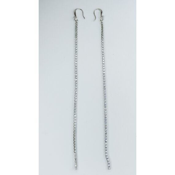 Серьги женские из гипоаллергенного ювелирного сплава серого цвета. Вставка- ювелирное стекло белого цвета. Высота серег- 10,0см, ширина- 0,3см. Застежка- петля.