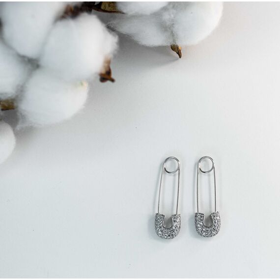 Серьги из гипоаллергенного ювелирного сплава серого цвета. Вставка- белого цвета. Высота серег-4см, ширина-1,2см. Застежка- булавка.